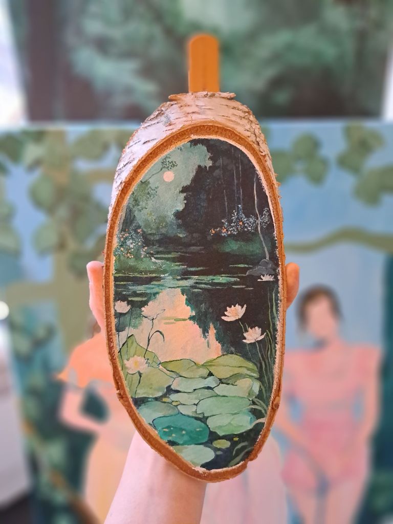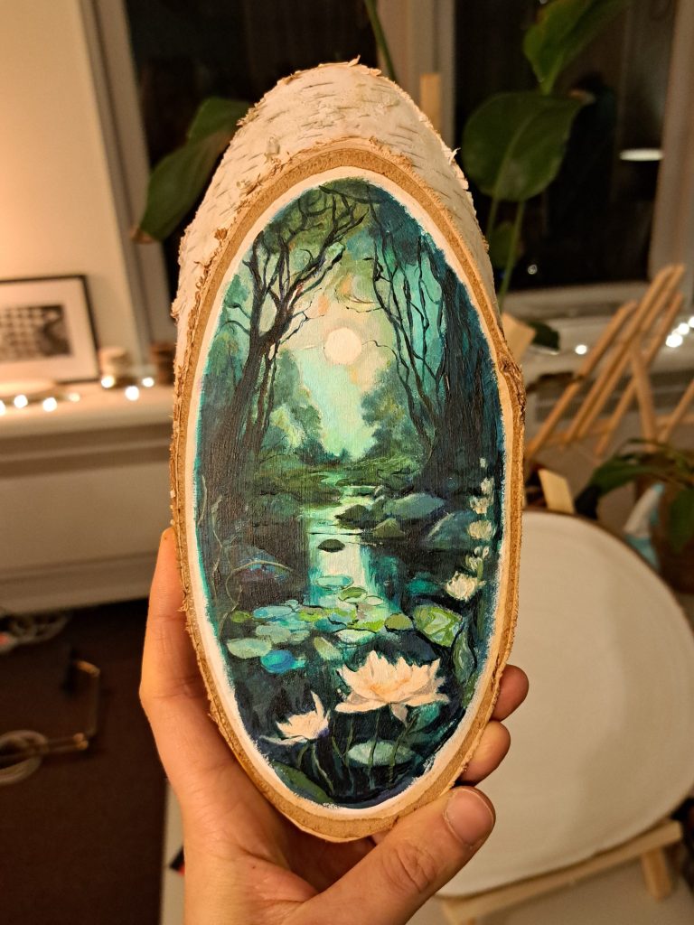 The Three Graces II (2024). Acrylics on an 80x120cm canvas. For sale. Visit my atelier for a viewing, by making an appointment.The Three Graces (2024). Acrylics on an 80x120cm canvas. Commissioned painting. Fine art prints available.Morning Rise (2024). Acrylics on an 80x120cm canvas. For sale. Visit my atelier for a viewing, by making an appointment.Moonflower II (2024). Acrylics on an 80x100cm canvas. For sale. Visit my atelier for a viewing, by making an appointment.Moonlit Enchantment (2023). Acrylics on birch wood. For saleCross section into Nature (2024). Acrylics on birch wood. SoldCross-section into Nature (2024). Acrylics on birch wood. SoldCross-section into Nature (2024). Acrylics on birch wood. For saleMoonflower (2023) – Digital painting made in Clip Studio Paint. Prints availableSamara (Tilmar in Memoriam), 2023. Acrylics on a 60x80cm canvas. Commissioned painting. Fine art prints availableBack to Nature (2023) – Acrylic painting on a 80x120cm canvas. For saleOcean (2024) – Textured acrylic painting. SoldCross-section into Nature (2023) – Acrylic painting on birch. SoldCross-section into Nature (2023) – Acrylic painting on birch. SoldCross-section into Nature (2023) – Acrylic painting on birch. SoldMysterious forest (2023). Acrylics on a 80x120cm canvas. For sale. Fine art prints available.Logo for the band Koi Forest (2023). Digital painting made in Clip Studio Paint. See my music artwork gallery here.Rosa (2023) – Coverart for the album by Deborah Slijkhuis. Acrylic painting on 50×50 cm canvas. Original painting belongs to Deborah. See my music artwork gallery here.Jimi on Fire (2023) – Acrylic painting on canvas. Not for sale